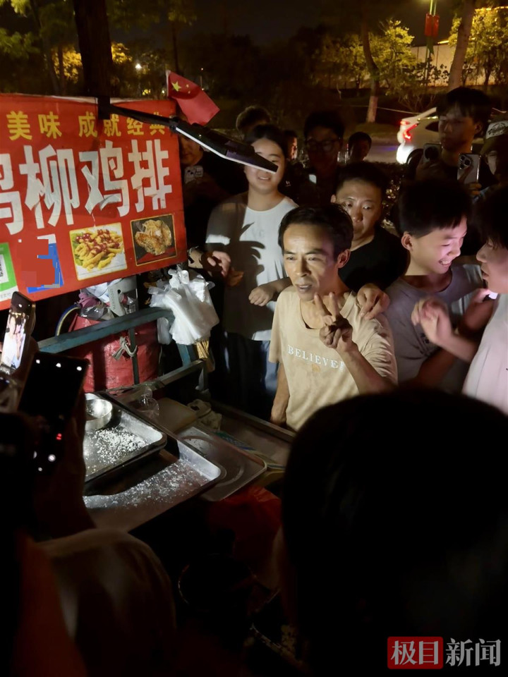 10月3日晚10时,极目新闻记者在“鸡排大道”看到,忙碌了一天的“鸡排哥”收摊准备回家。然而现场的顾客十分热情,纷纷要求与鸡排哥合影,“鸡排哥别走,求你了,能和我合个影吗?”